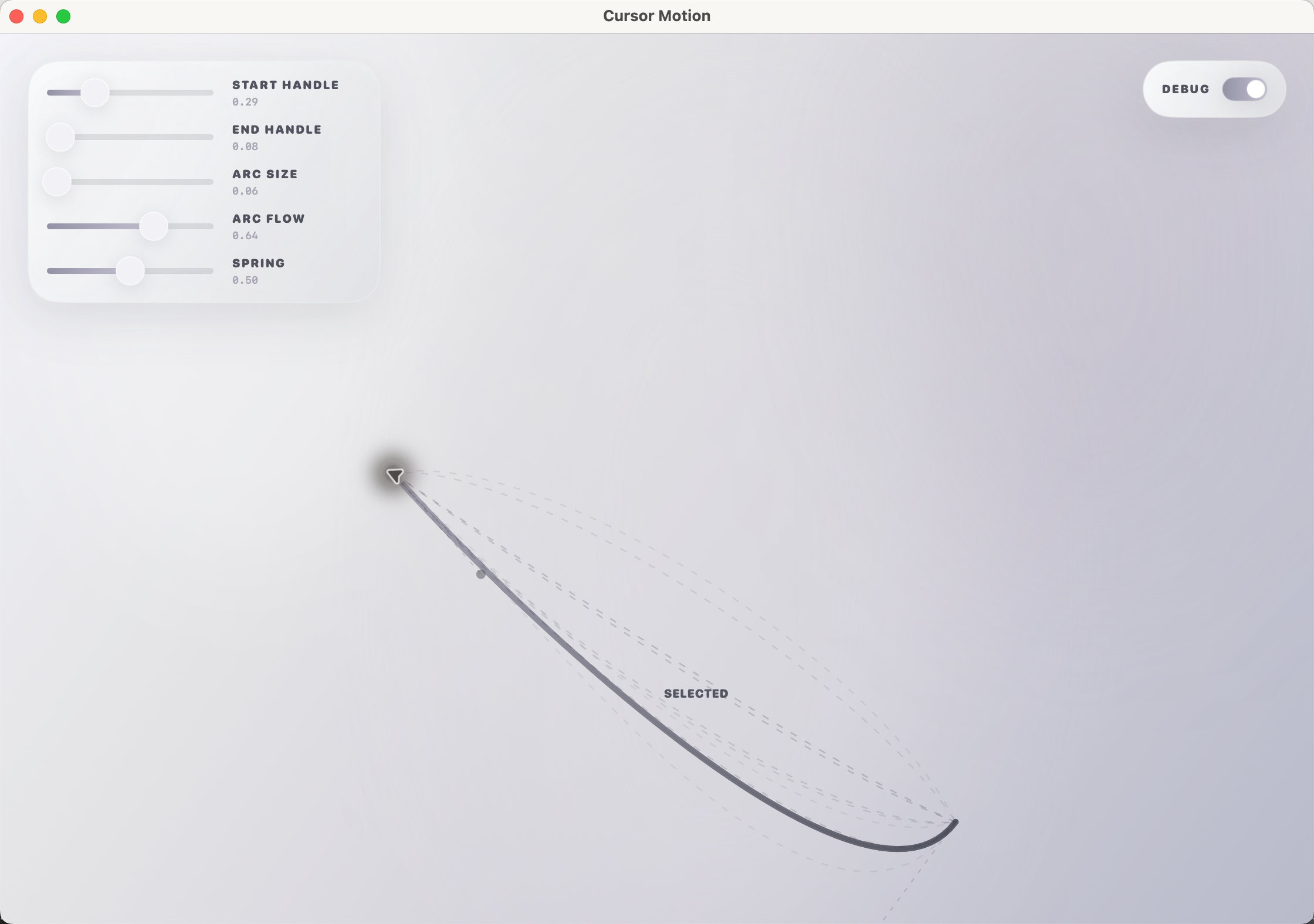 这个版本还是调优过的,也让codex去找一些相关的paper和开源项目做参考和借鉴,里面最关键的就是曲线的绘制和选择以及cursor移动速度的控制。