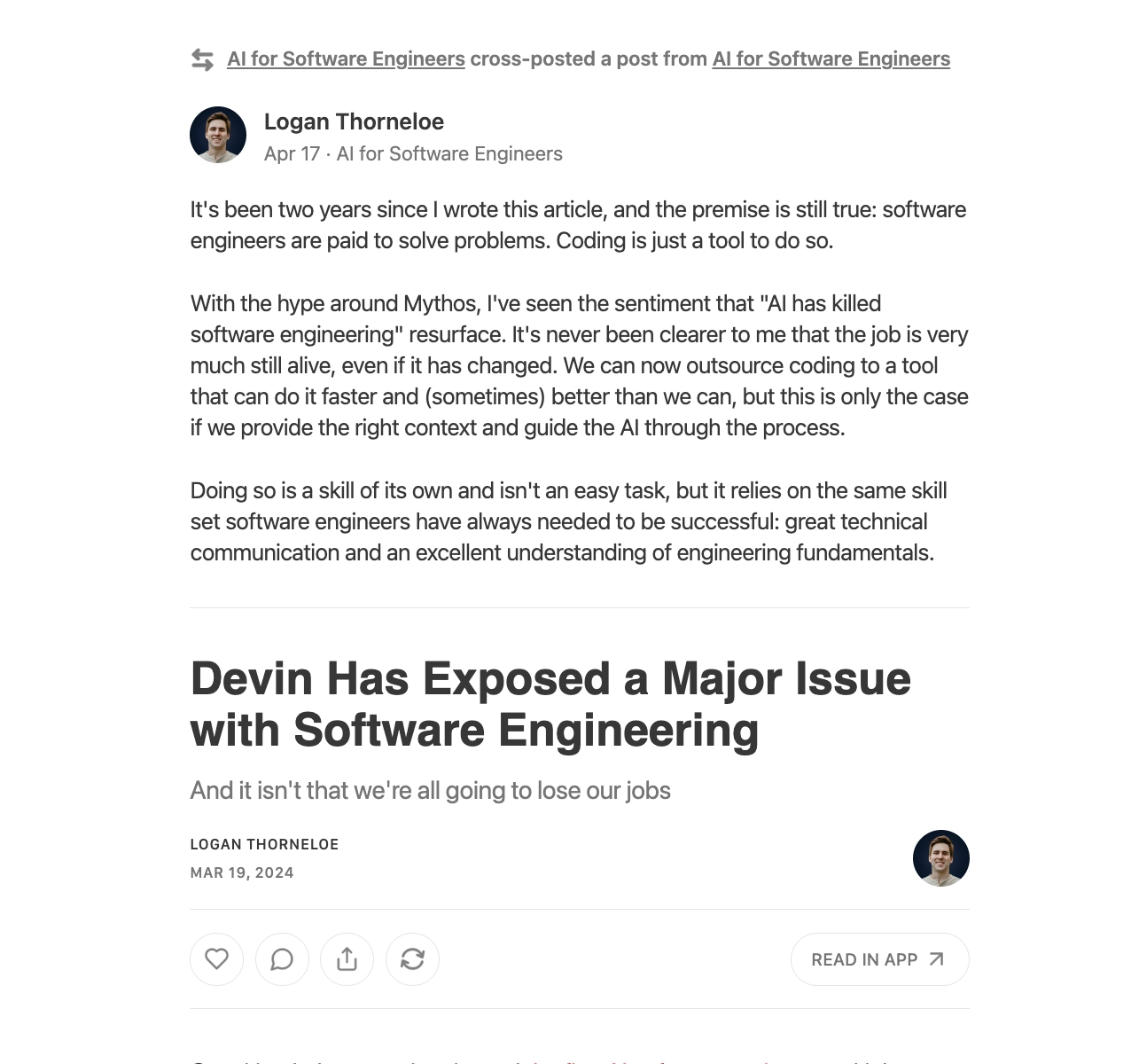 就好像Logan昨天repost了他在前年Devin刚出来时写的文章附带的那个核心观点: