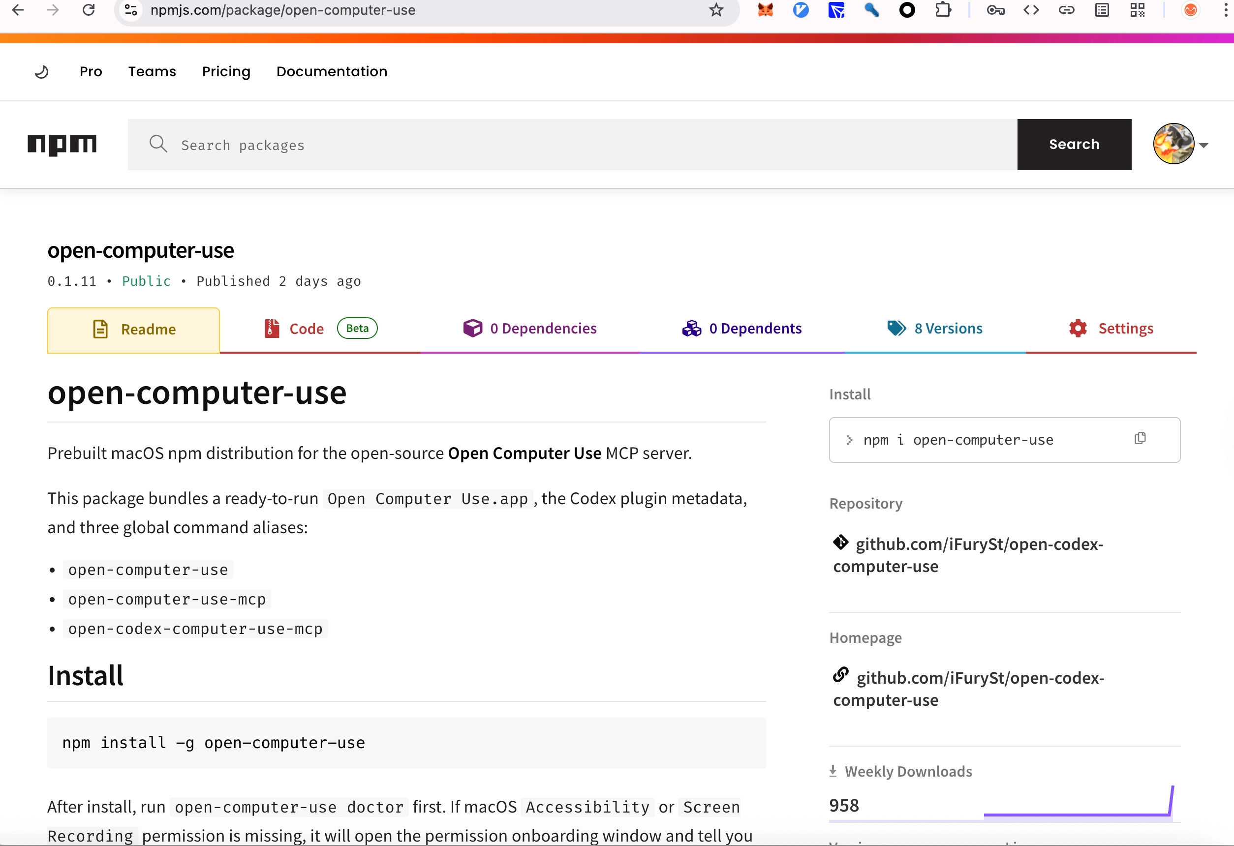 以及发布到npmjs,通过npm i -g open-computer-use就能一键安装,这些全都是AI做的,给一个gh,帮忙点击一些东西就完事了。