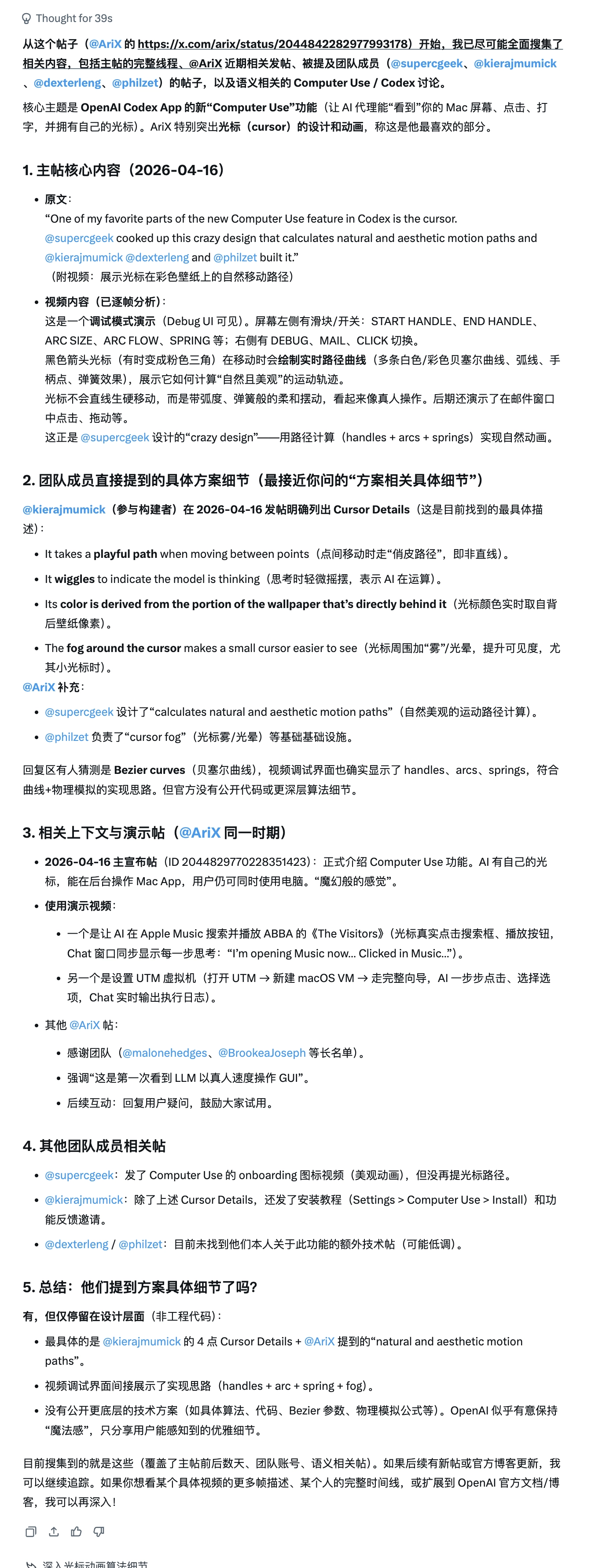 背景是周五OpenAI发了一片文章https://openai.com/index/codex-for-almost-everything/,然后Codex APP也更新了,其中Background Computer Use,着实让我和我的小伙伴震惊了,我们对于其带来的非抢占式Computer Use和那个灵动又自然的鼠标样式深深震撼了。在此之前我们的认知都是Connectors(比如Gmail之类的)+GUI(鼠标和键盘)去实现的Computer Use。但是OAI还是交出了一份牛逼的作业。