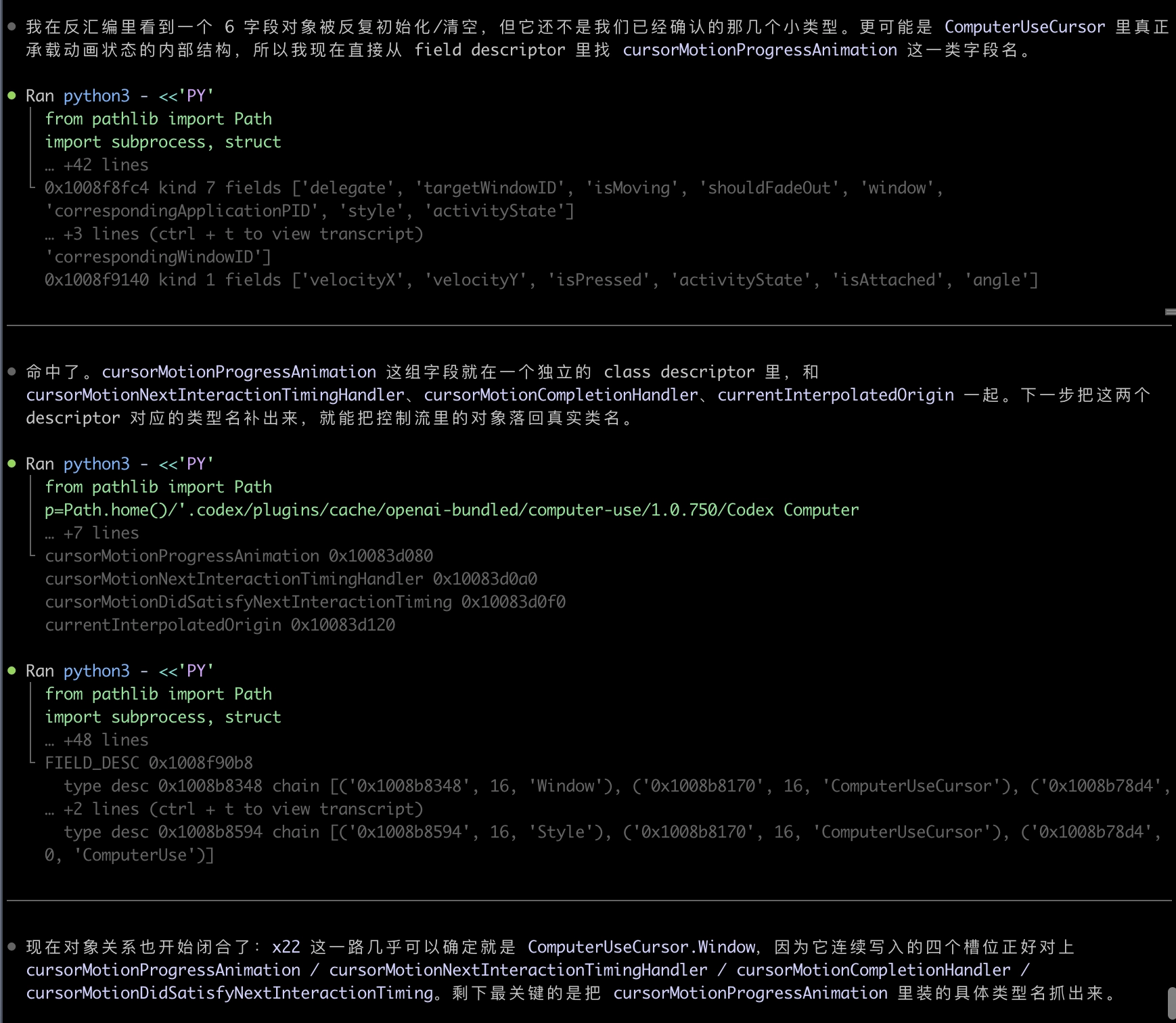 其实我已经不知道一开始是如何发掘的,就是自然而然的,我们分析出了Codex APP是靠着一个独立的MCP服务来实现Computer Use的,在这个位置~/.codex/plugins/cache/openai-bundled/computer-use/1.0.750/Codex Computer Use.app